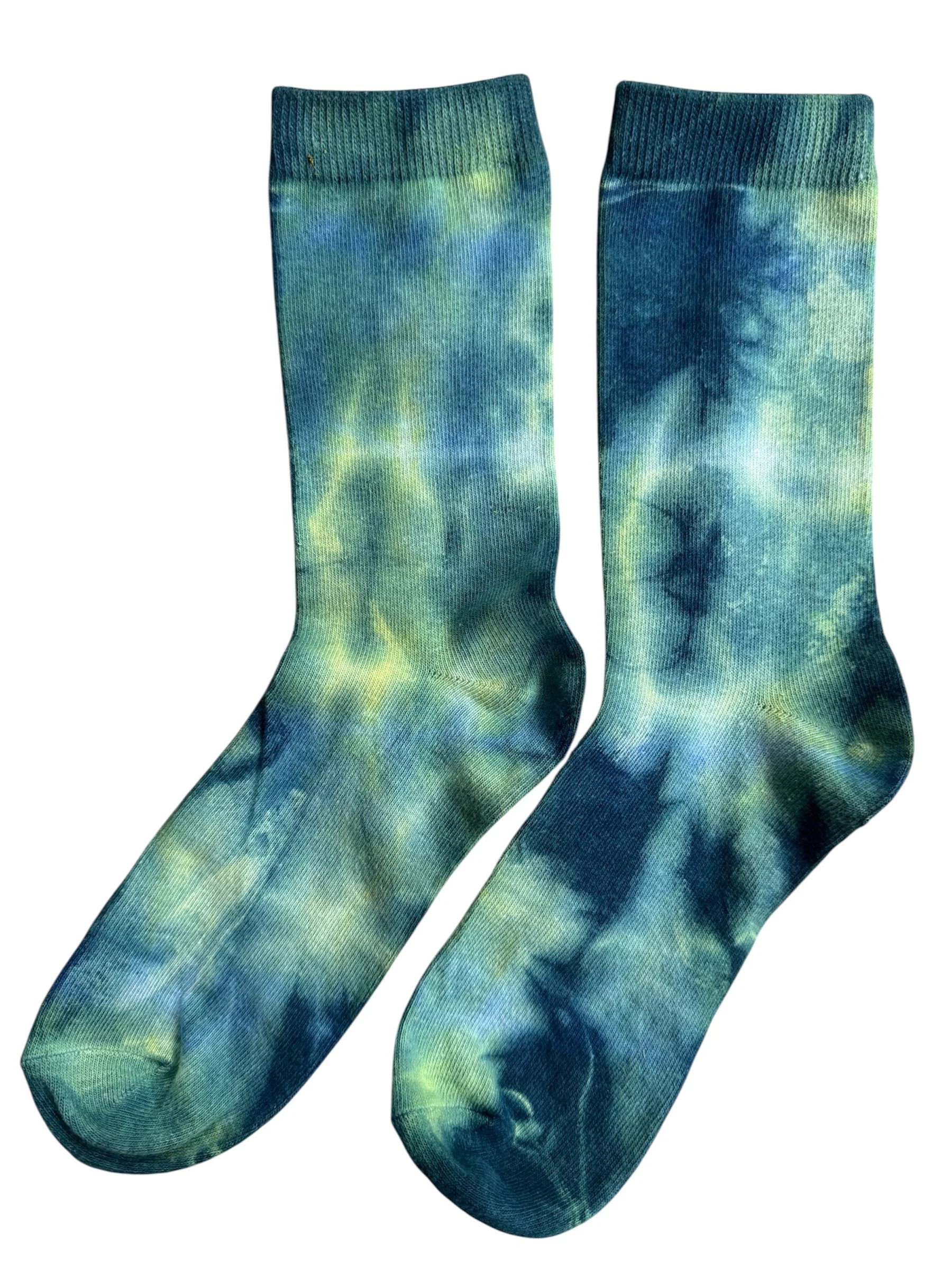 Explore our exquisite collection of naturally dyed organic cotton socks, meticulously crafted using handpicked flowers from our garden and organic indigo. These one-of-a-kind socks are available in adult one size fits all, as well as kids sizes 3-6 and 7-10, ensuring the perfect fit for everyone. Experience unmatched comfort and charm with our eco-friendly, cute socks, and make each step a delightful journey in sustainable fashion.